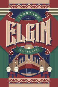 The Gin City is proud to be a sponsor of Holly Days and passionate supporter of Elgin small businesses. The Gin is a one woman studio, located in Elgin, focused on creating art about and for the Elgin community. All art created by The Gin is an effort to spread joy, spark curiosity and evoke a sense of pride for the place we live.