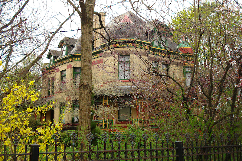 An excellent example of the Queen Anne style, this mansion was built in 1889 for one of the founders of the Elgin Board of Trade and whose ownership and control of more than 50 creameries made him one of America’s leading butter men. After serving as a private club/restaurant in the 1980s, it reverted to a single-family home. Learn more here. Located at 321 Division Street.