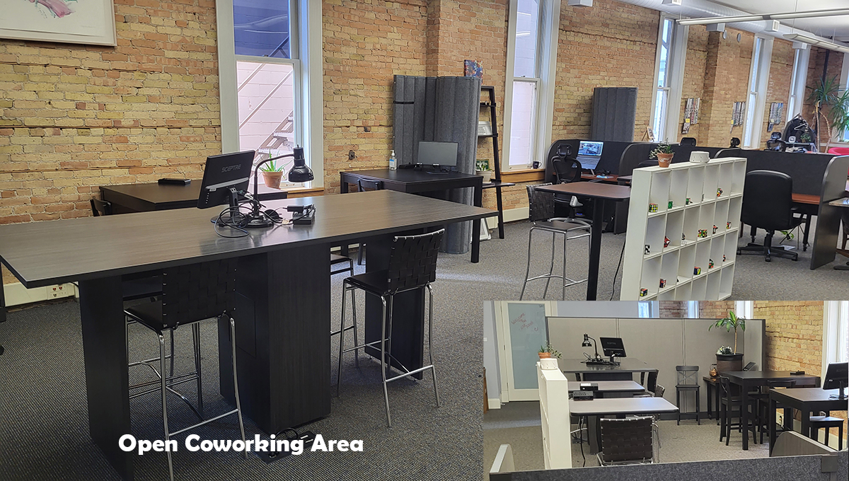 Open Coworking: Grab any desk in our common area, bring your device, pick a seat, and get to work. Several different monthly packages are available, as well as day and week passes, and most with 24/7 access.